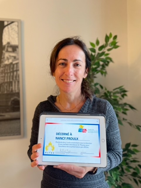 Nancy Proulx a reçu au terme de ce concours une bourse de 1000$ pour l’excellence de sa présentation par affiche pour son projet de recherche doctoral.